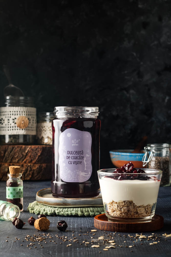 Dulceața de coacăze negre cu vișine merge grozav în variantele clasice! Poți prepara cu ea un iaurt cu fructe adevărate. O poți pune pe papanași - are aceeași culoare bogată, care contrastează apetisant cu smântâna, dar are o aromă incomparabil mai intensă decât cea a dulceții de afine de munte. Dar merge extraordinar și în combinații de dulce cu sărat - neapărat să o încerci alături de brânzeturi, pe un charcuterie board sau cheese board.